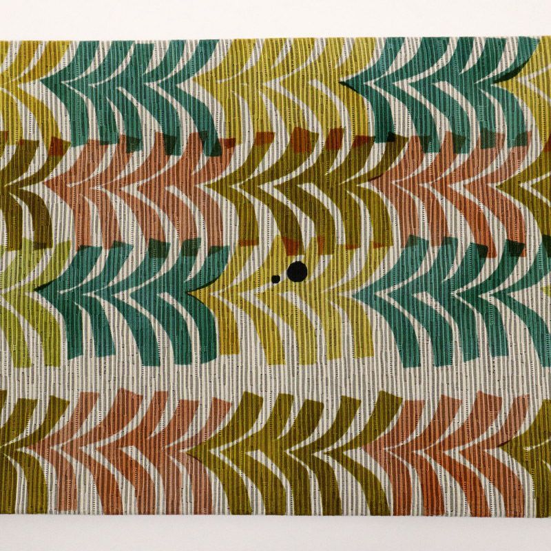 アドラスコットンイカット×綿麻アッシュグレー 半幅帯 モスグリーンアイ OH025