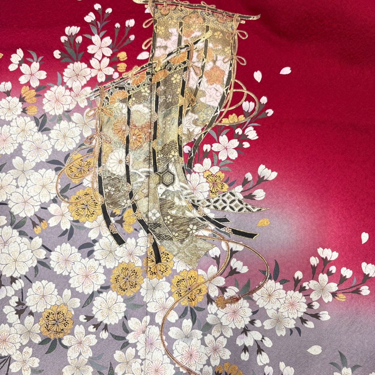 振袖 身丈156.5cm 裄丈65cm M 袷 鈴乃屋 几帳 桜 金銀彩 ぼかし 赤 正絹 秀品の検索結果