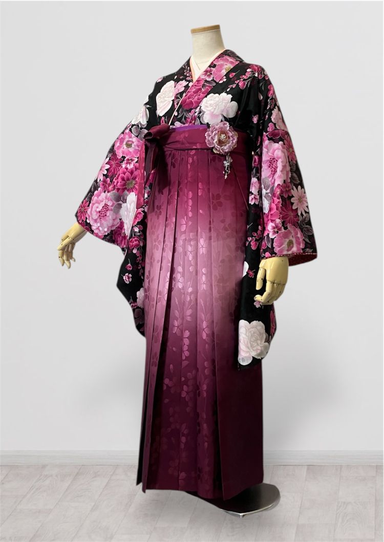 着物 袴 帯 3点セット 卒業式 女性 着物 ハカマ 帯 黒 花 芍薬 95-2の検索結果