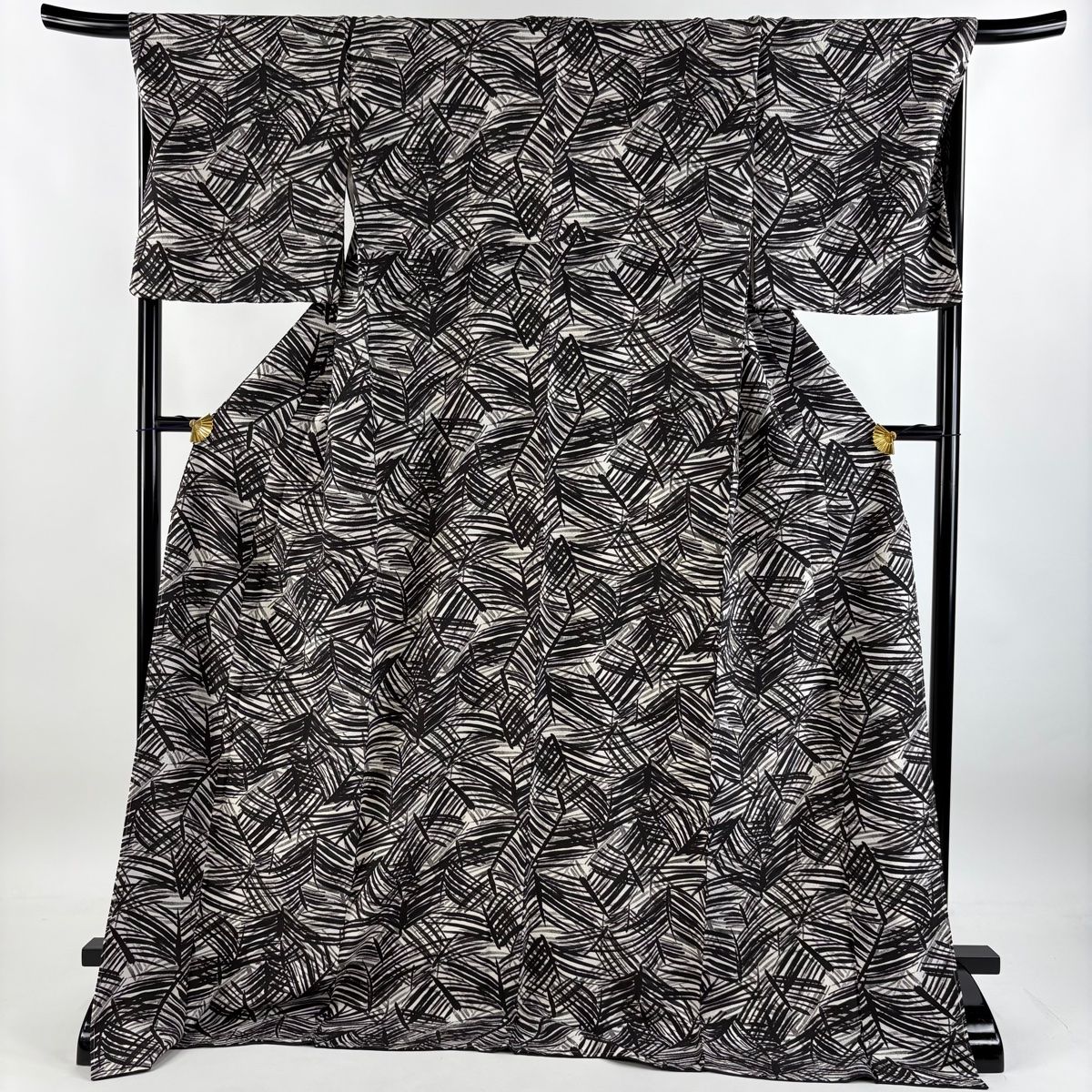 小紋 身丈177cm 裄丈69cm L 袷 名古屋帯セット 葉柄 黒灰 正絹の検索結果
