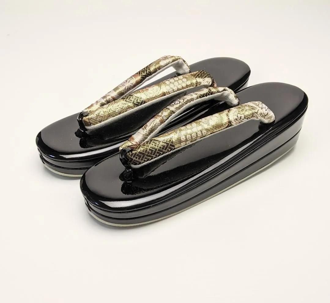 草履バッグセット 帯地 三段 フリーサイズ 24cm 適合足サイズ22.5cm~24.5cm 黒色 和装 振袖 成人式 結婚式 NO42594