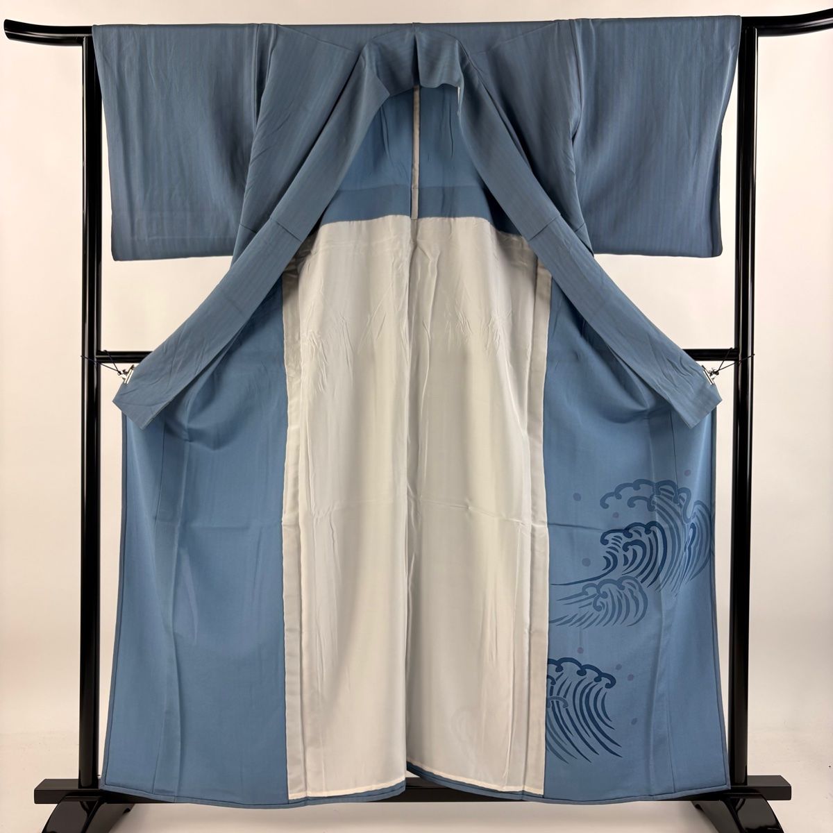付下げ 身丈160cm 裄丈63.5cm S 単衣 縦縞 波 青灰色 正絹 秀品の検索結果