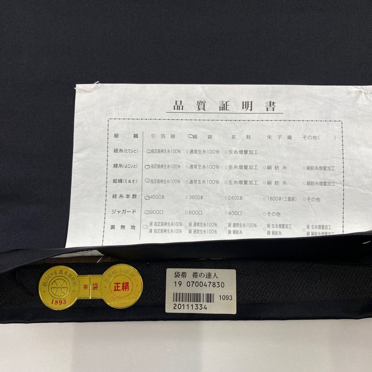 袋帯 秀品 証紙 片輪車 草花 金銀糸 黒 六通 正絹の検索結果