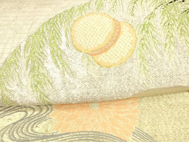 平和屋着物 夏物 アンティーク 大正ロマン 丸帯 地紙流水花文 金銀糸 正絹 DAAW4511cmの検索結果