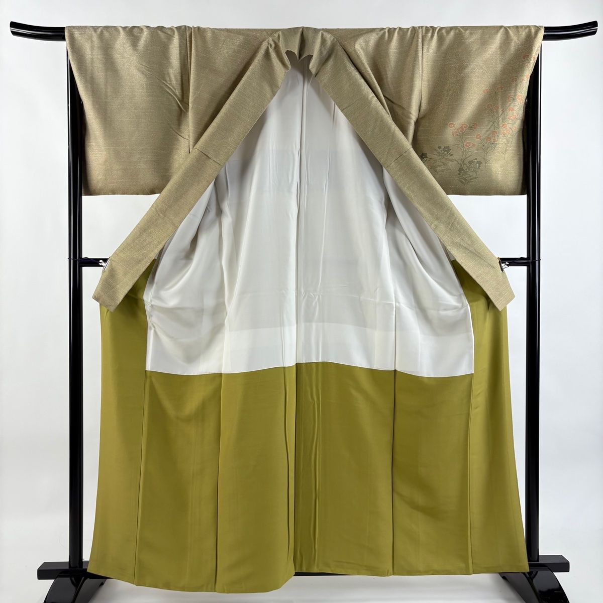 訪問着 身丈162.5cm 裄丈67.5cm L 袷 袋帯セット 草花 金銀彩 ぼかし ベージュ 正絹 秀品