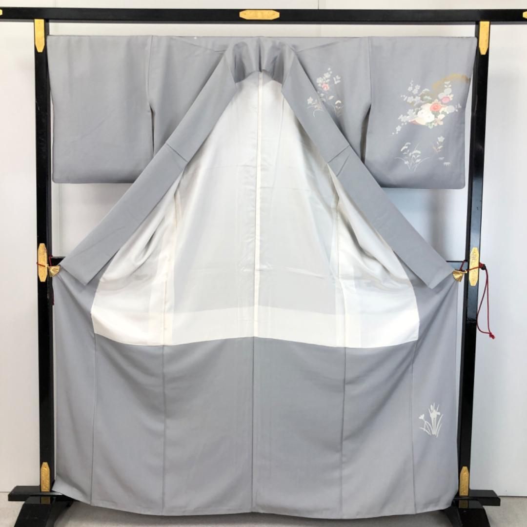 訪問着 友禅 花模様 暈し 薄鼠色 金駒刺繍 金彩 K-5499の検索結果