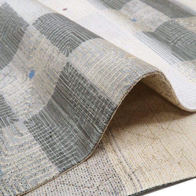 袋帯 正絹 セミフォーマル 仕立て上がり 六通 市松取り 金糸 オフホワイト 黒色 灰色 きもの北條 A1278-15 WWW_GLOBALQUALITYIMPORTS_COM