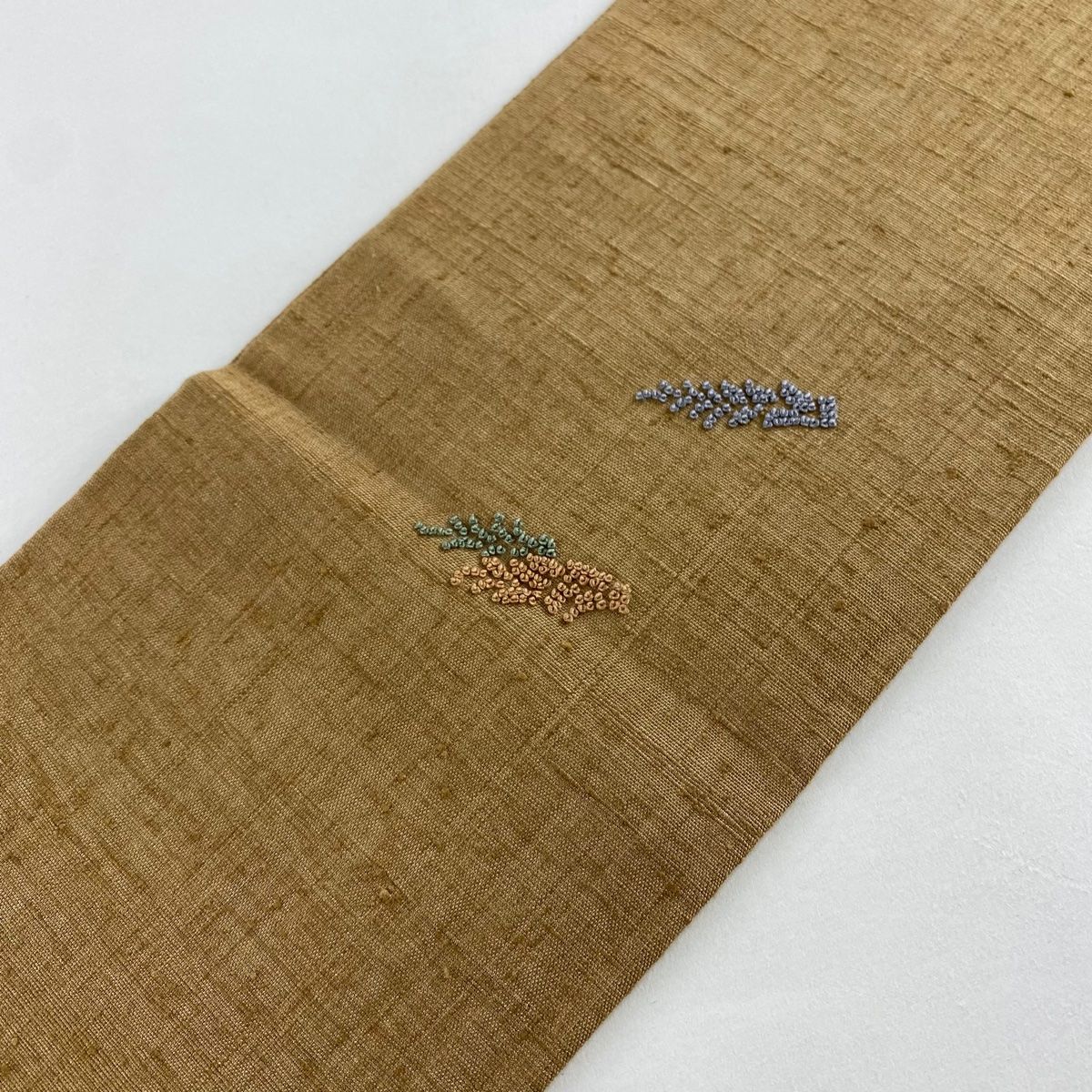 名古屋帯 秀品 紬地 色紙 生り物 刺繍 茶色 正絹 WWW_GLOBALQUALITYIMPORTS_COM