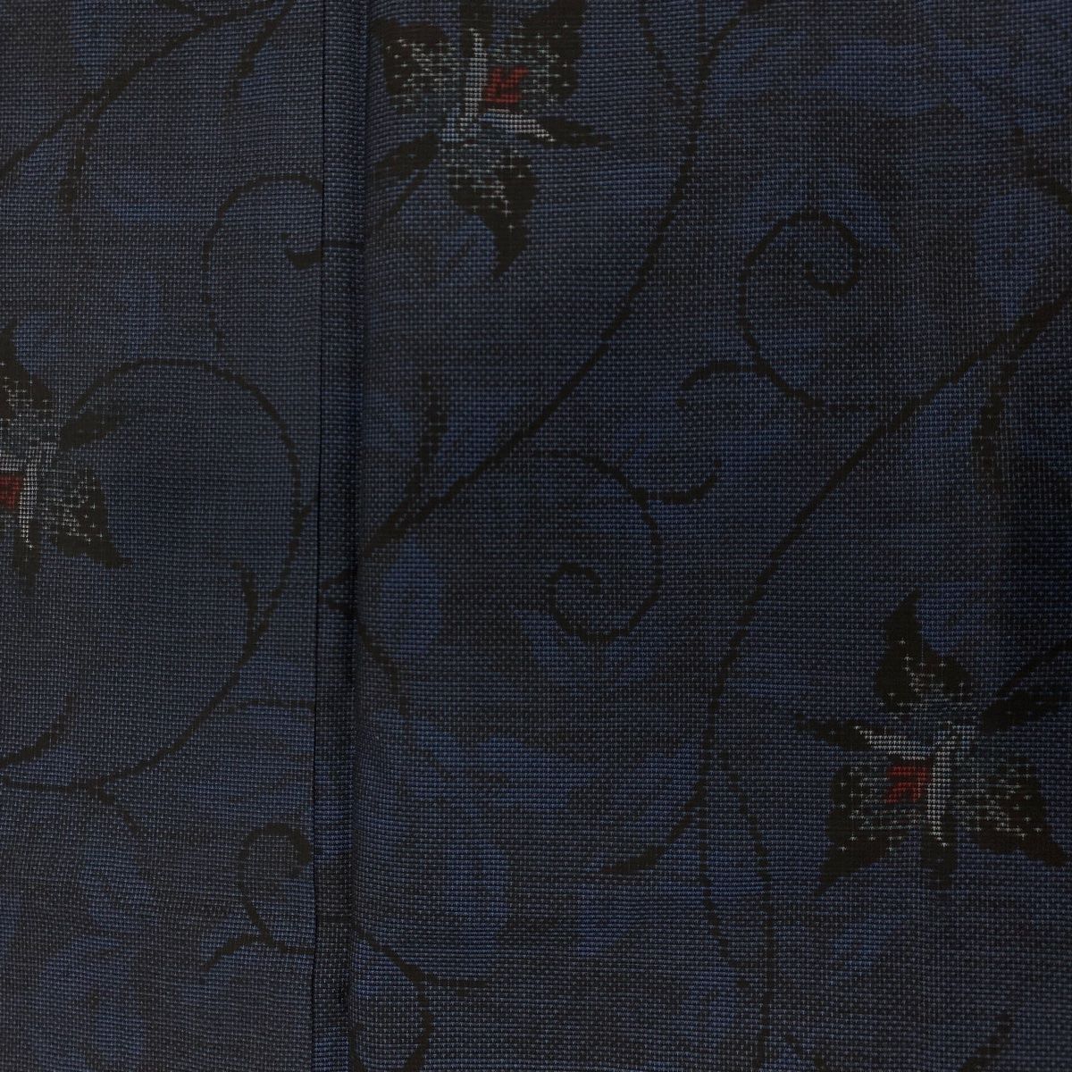 大島紬 身丈171.5cm 裄丈68.5cm L 袷 純泥染 証紙 花唐草 濃紺 正絹 秀品 WWW_GLOBALQUALITYIMPORTS_COM