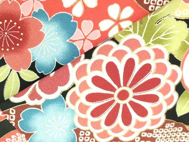 平和屋着物 小振袖 二尺袖 道長花鞠文 橘 黒地 金彩 DAAX1965opの検索結果