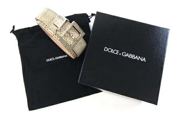 ドルチェ&ガッバーナベルトベージュパイソン型押しレザー80cm新品ファッションアパレルD&GロゴビジネスDOLCE&GABBANA