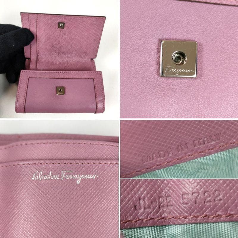 Salvatore Ferragamo サルヴァトーレフェラガモ 三つ折り財布 ガンチーニ レディース レザー ピンク系 コンパクトウォレット ミニ財布 WWW_GLOBALQUALITYIMPORTS_COM