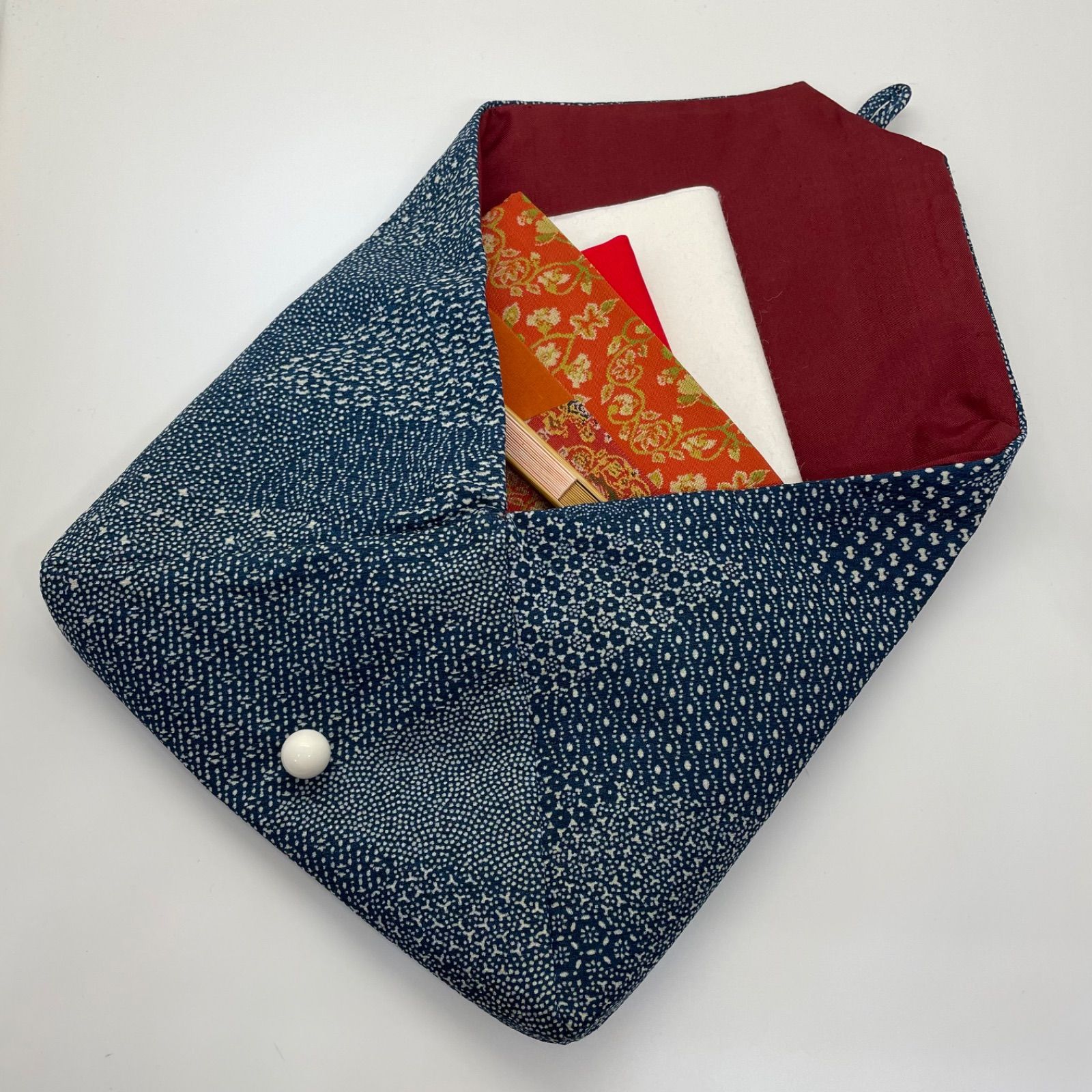 Kanataの茶道ドレス Sサイズ 江戸小紋 落ち着いた青 寄せ柄が上品なお着物で作った 茶道お稽古着 数寄屋袋付き WWW_GLOBALQUALITYIMPORTS_COM