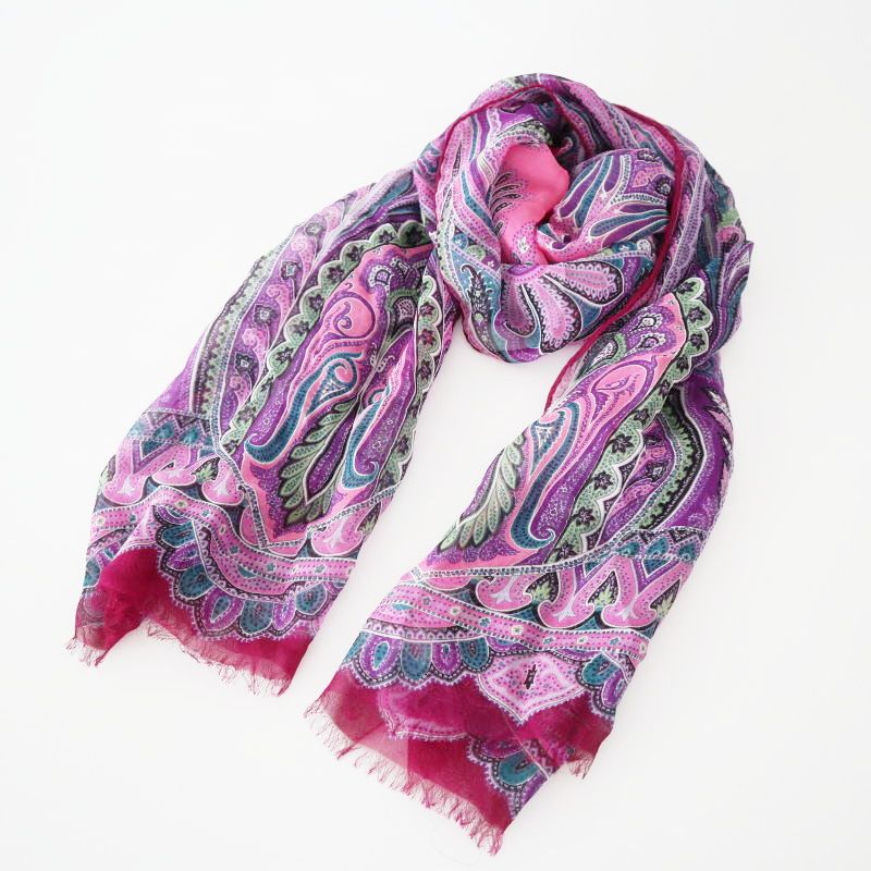 ETRO エトロ ペイズリー柄 シルク シースルー スカーフ ストール パープル K10-k024の検索結果