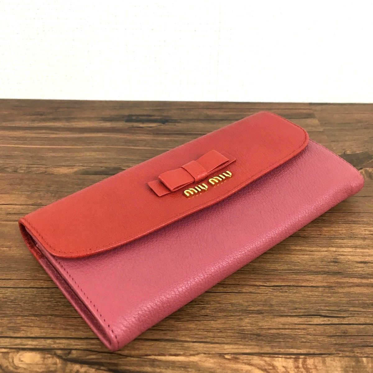 453 み MIUMIU 長財布 5M1109 レザー ピンク レッド リボン カードケース付きの検索結果