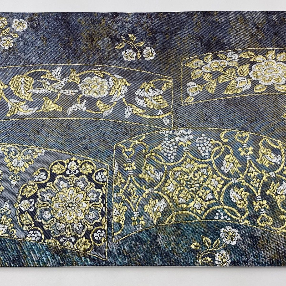袋帯 秀品 短冊 華文 金糸 箔 青灰色 六通 正絹 WWW_GLOBALQUALITYIMPORTS_COM