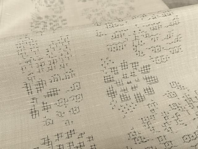 紬 身丈167cm 裄丈66cm M 袷 開き名古屋帯セット 草花 幾何学 墨色 正絹 秀品