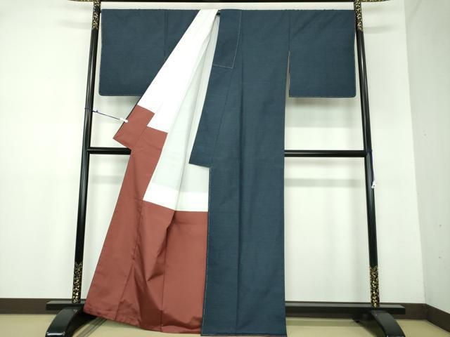 紬着物 横段模様 グラデーション 黒色 K-5268