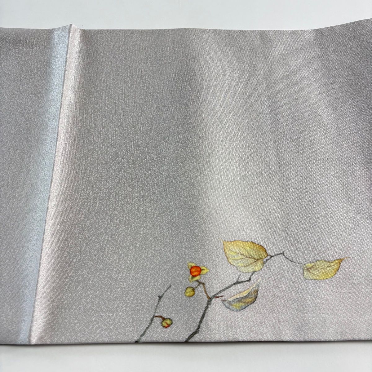 袋帯 秀品 落款 葉と実 灰紫 お太鼓柄 正絹 WWW_GLOBALQUALITYIMPORTS_COM