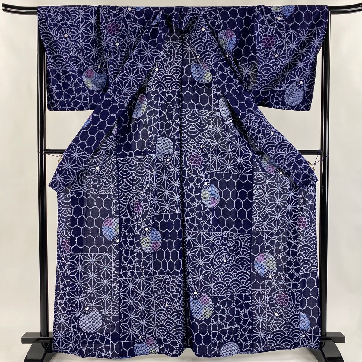 浴衣 身丈164cm 裄丈66cm M 絞り浴衣 団扇 麻の葉 紺色 綿 WWW_GLOBALQUALITYIMPORTS_COM