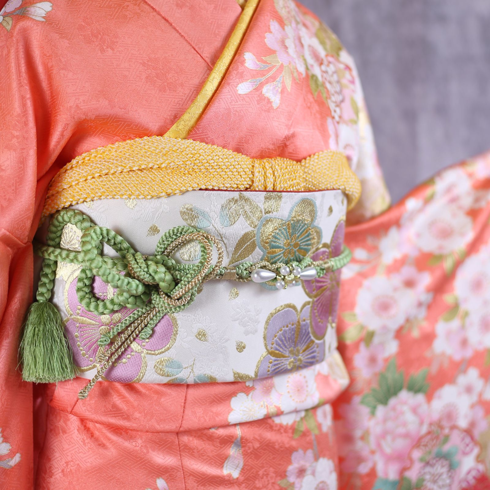 振袖フルセット 振袖セット 振袖 Lサイズ オレンジ×桜 成人式 着物 晴れ着 7点フルセット F-67の検索結果