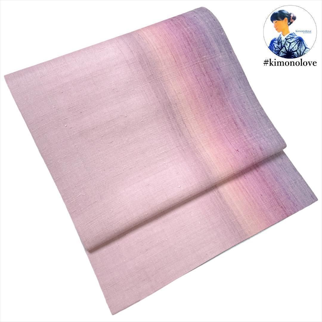 もう片面はくすみピンクから薄紫の縞模様がグラデーションに染められているリバーシブル帯です。