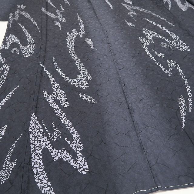 平和屋着物 石川県指定無形文化財 牛首紬 白山工房 手織り 立波花鳥文 正絹 AABC4842zg