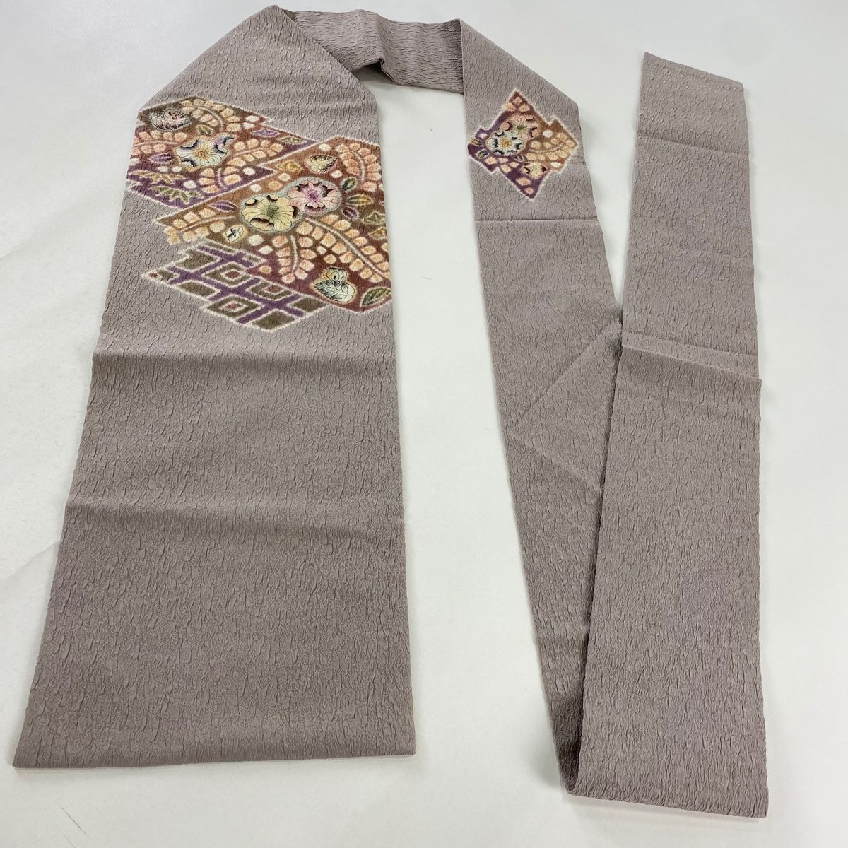 平和屋着物 塩瀬 九寸名古屋帯 駒刺繍 草花文 薄梅鼠色 金糸 正絹 DAAW6607ob