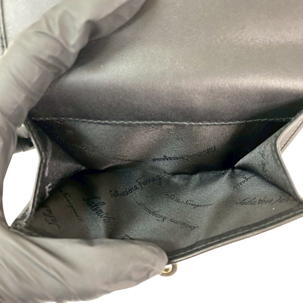 Salvatore Ferragamo サルヴァトーレフェラガモ ガンチーニ ロゴ 金具 レザー 二つ折り財布 ミニ ウォレット ブラック 28141 WWW_GLOBALQUALITYIMPORTS_COM