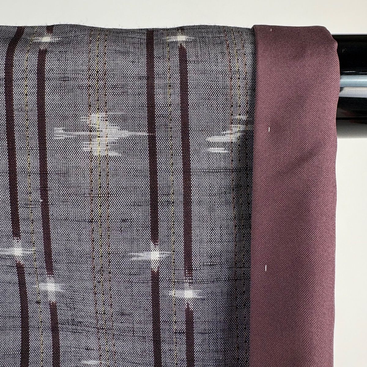紬 身丈157.5cm 裄丈66.5cm M 袷 縞 幾何学模様 灰紫 正絹