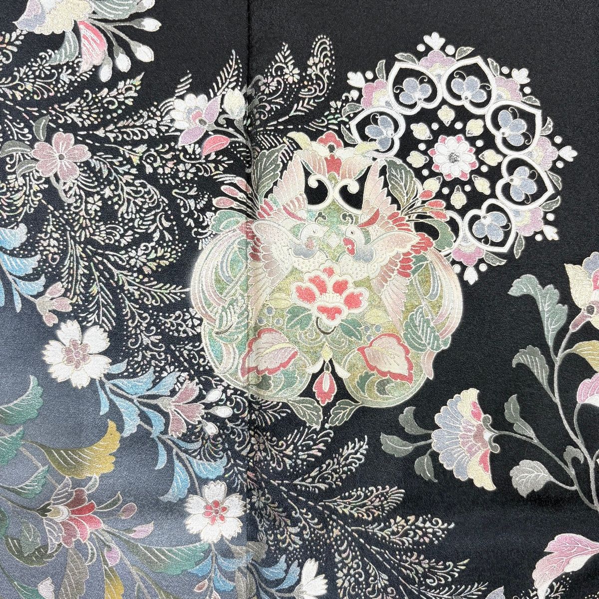 訪問着 身丈169cm 裄丈70cm L 袷 向かい鳥 草花 金銀彩 黒 正絹 秀品の検索結果