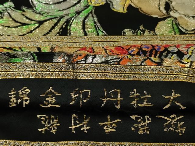 平和屋本店 最 龍村平蔵製 丸帯 大牡丹印金錦 黒地 金銀糸 DZAA4355kh5 WWW_GLOBALQUALITYIMPORTS_COM