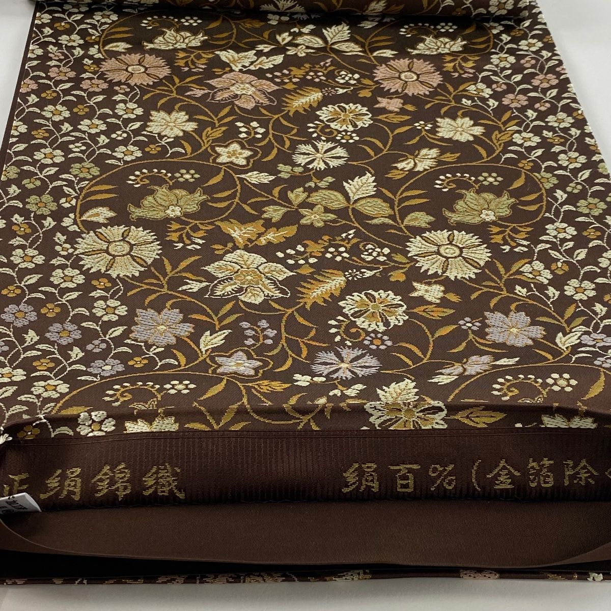 袋帯 箔屋清兵衛 落款 正絹錦織 花唐草 箔 焦茶色 六通 正絹 WWW_GLOBALQUALITYIMPORTS_COM