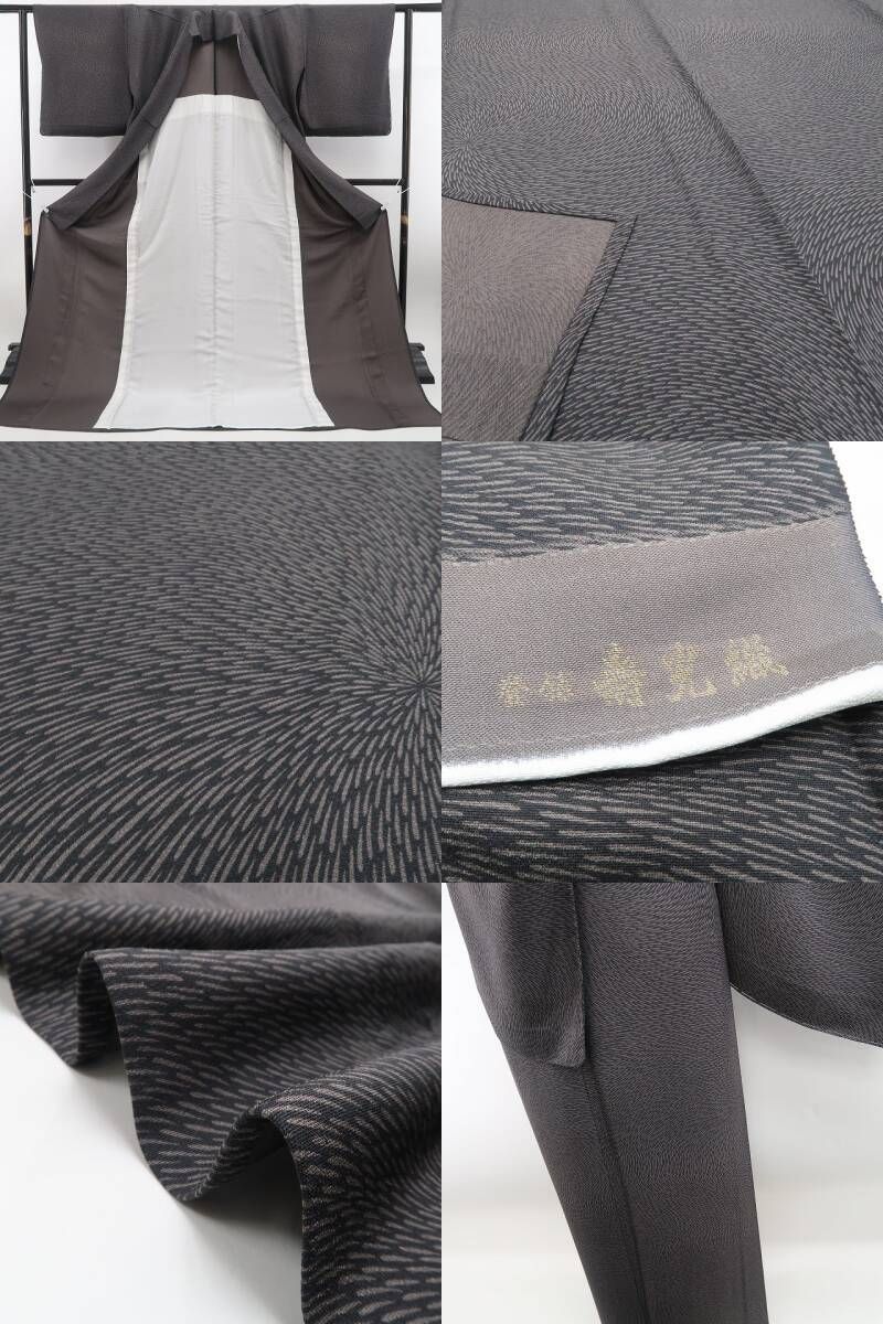 江戸小紋 身丈151.5cm 裄丈66cm M 袷 保科土山 落款 雪輪 竹縞 灰色 正絹 秀品