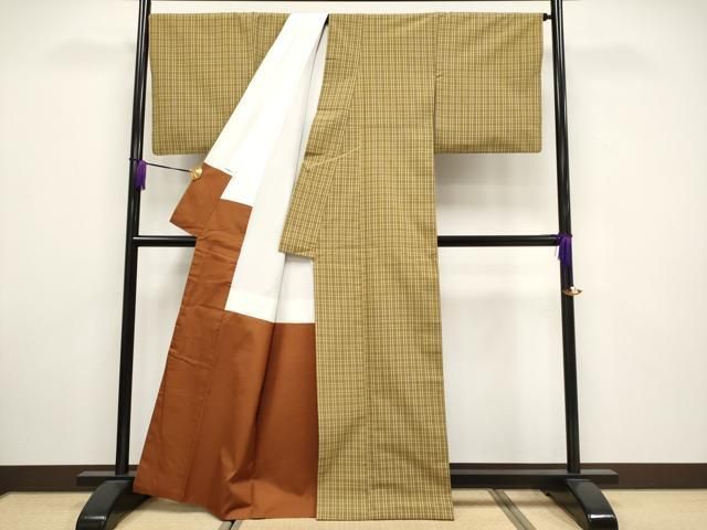 平和屋着物 上質な紬 単衣 格子 正絹 AABB7722jh