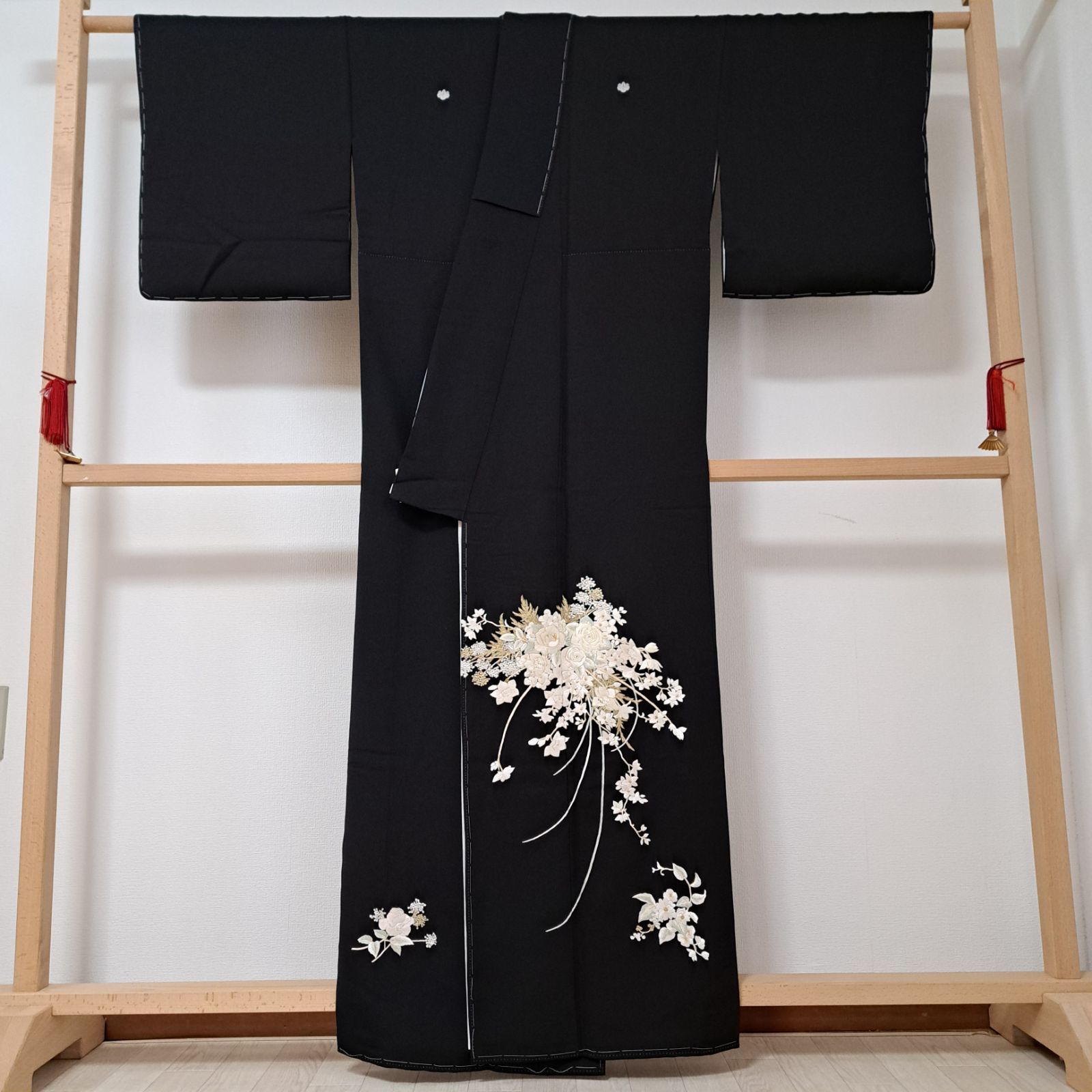 黒留袖 裄68 身丈165 袖49 裄長 正絹 袷 五三の桐紋 洋花の刺繍 め14S04 k2514の検索結果