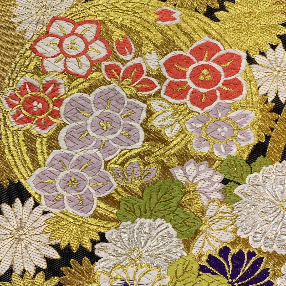 振袖 身丈159cm 裄丈64cm M 袷 華文 草花 金糸 金彩 えんじ色 正絹 秀品