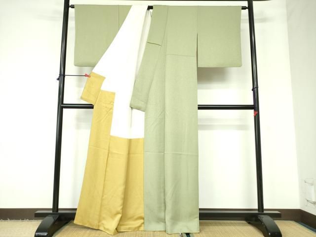 平和屋着物 上質な色無地 霞地紋 柳色 正絹 DAAX1371opの検索結果