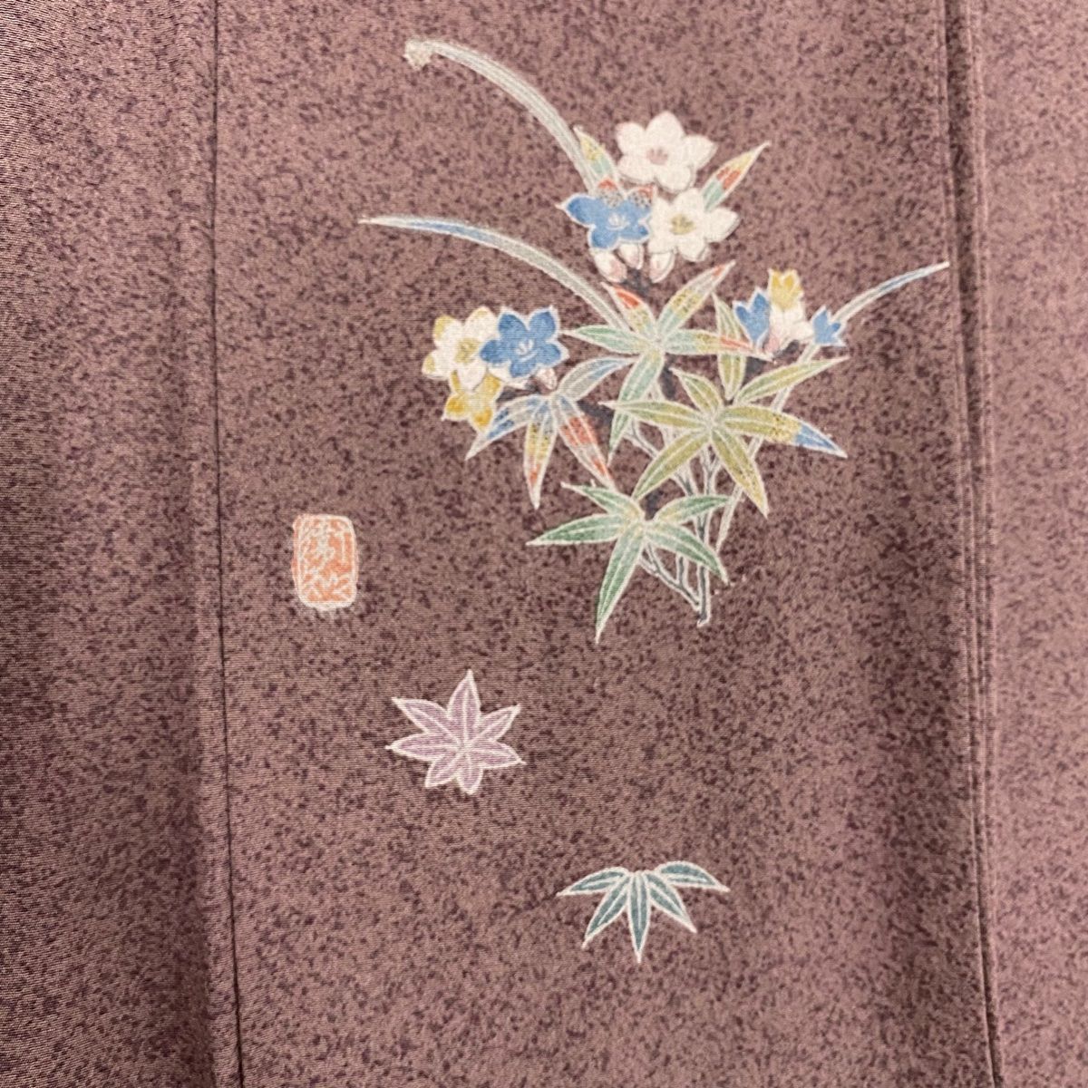 小紋 身丈163.5cm 裄丈64cm M 袷 落款 幾何学模様 縮緬 灰紫 正絹 秀品 一つ紋の検索結果