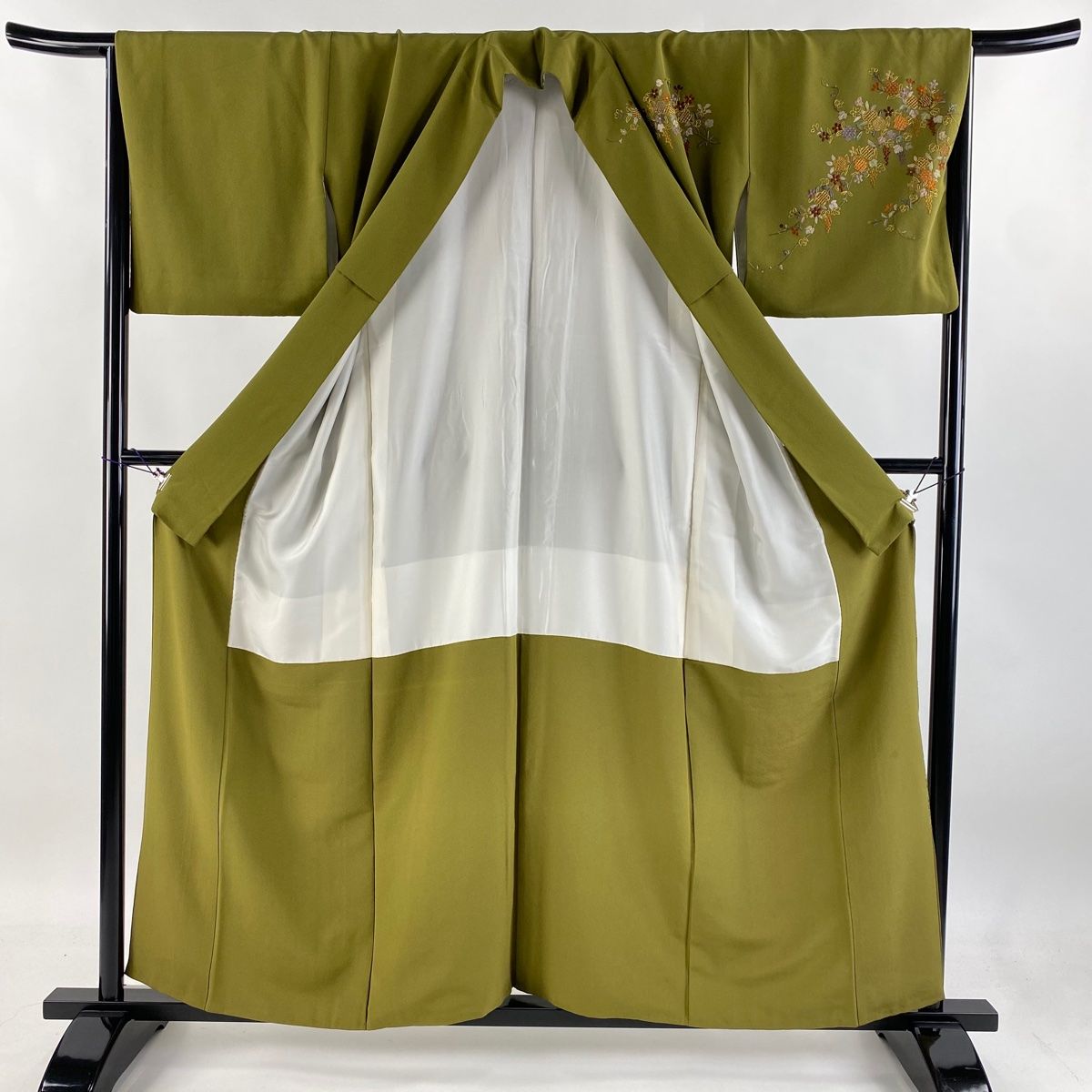 訪問着 身丈158cm 裄丈66cm M 袷 草花 籠目 刺繍 金糸 茶緑色 正絹の検索結果