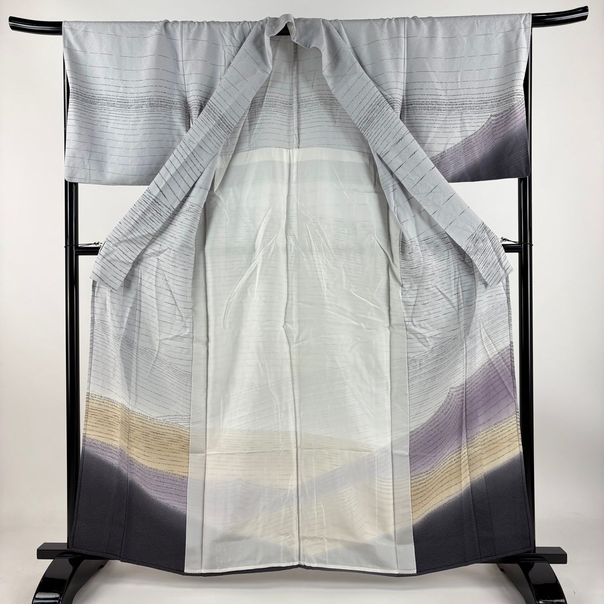 訪問着 身丈160cm 裄丈67.5cm L 単衣 落款 波 幾何学模様 染め分け ぼかし 青灰色 正絹 秀品 WWW_GLOBALQUALITYIMPORTS_COM