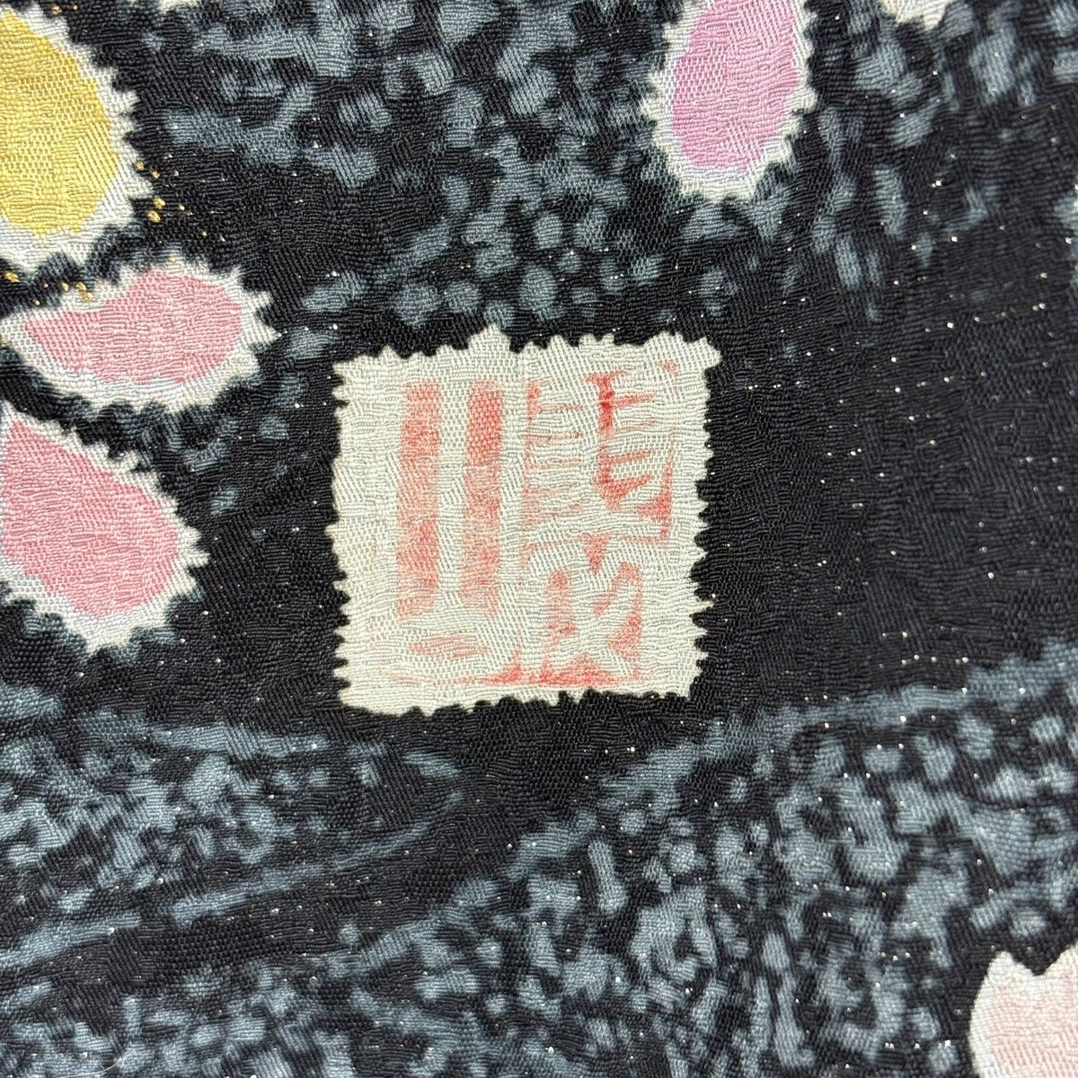 振袖 身丈156.5cm 裄丈65.5cm M 袷 花丸文 桜 金糸 金彩 黒 正絹
