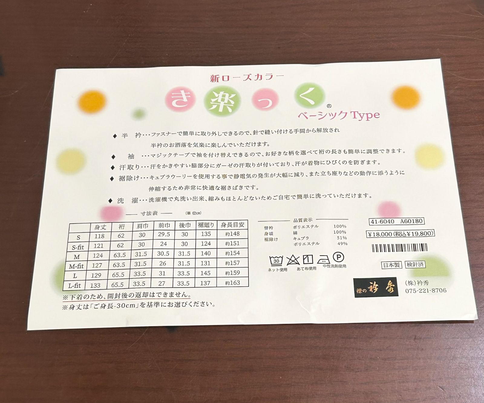 衿秀 き楽っく長襦袢 S M L サイズ 替え袖なしの検索結果