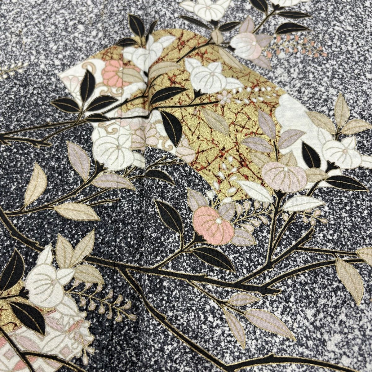 訪問着 身丈155cm 裄丈65.5cm M 袷 橘 菊 金彩 黒灰 正絹 秀品の検索結果