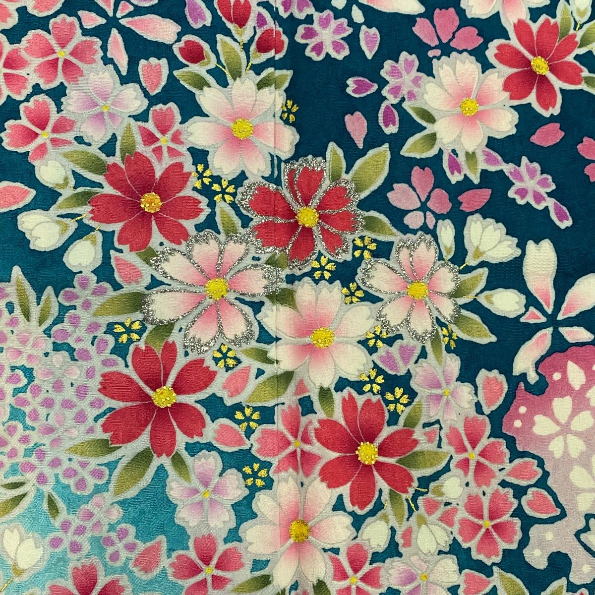 振袖 身丈169cm 裄丈67.5cm L 袷 桜 雪輪 箔 金彩 青緑 正絹の検索結果