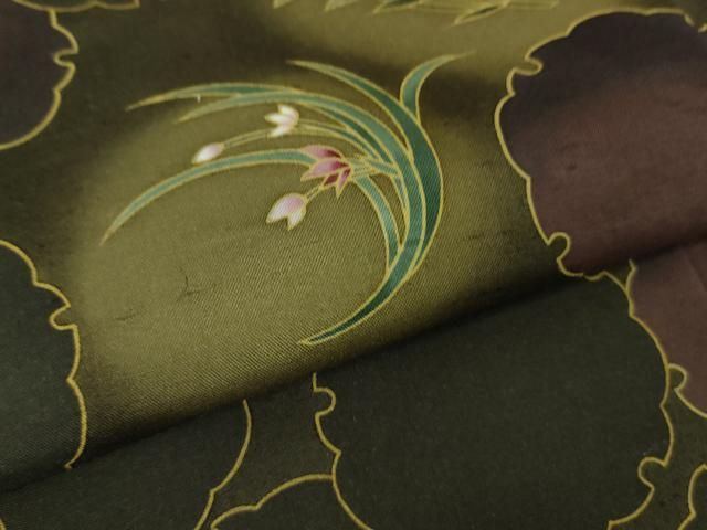 訪問着 身丈166cm 裄丈71cm L 袷 やまと 藤 シルエット 銀糸 焦茶色 正絹 秀品