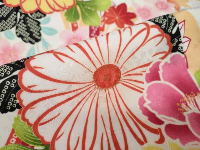 平和屋着物 小振袖 二尺袖 熨斗草花文 金彩 洗える着物 DAAW5692udの検索結果