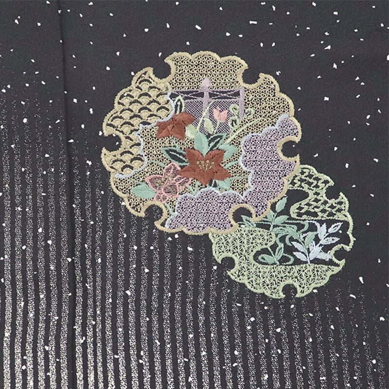 訪問着 袷 レディース 正絹 黒 白ベージュ 雪輪 刺繍 モダン 身丈161cm 裄丈65.5cm パーティ 会食 Mサイズ相当 WWW_GLOBALQUALITYIMPORTS_COM