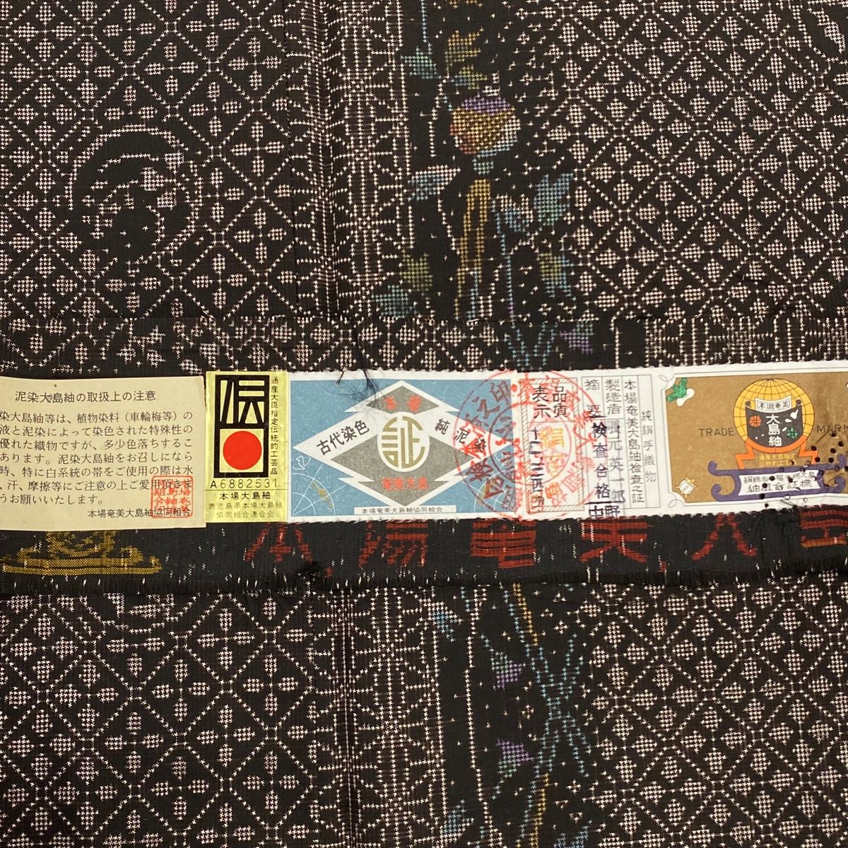大島紬 身丈156cm 裄丈61.5cm S 袷 純泥染 証紙 葉柄 簪 焦茶色 正絹 WWW_GLOBALQUALITYIMPORTS_COM