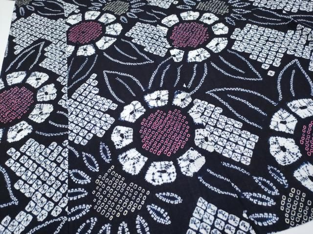 平和屋着物 上 夏物 浴衣 有松鳴海絞り 牡丹 黒地 綿 CYAA3683s5